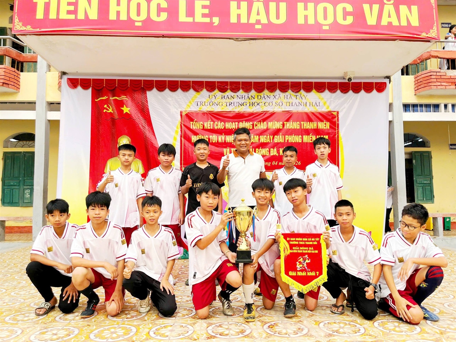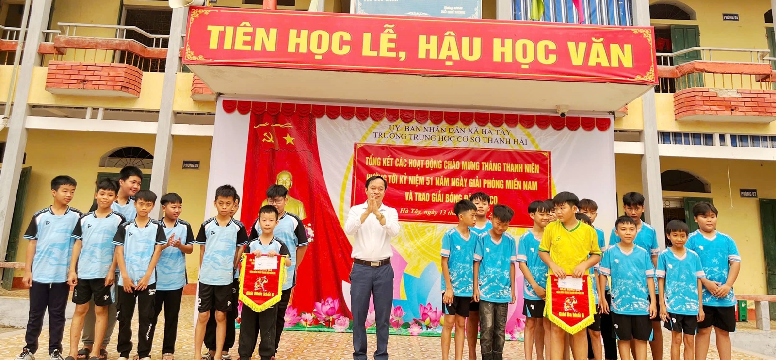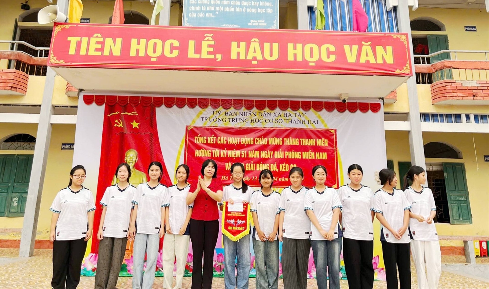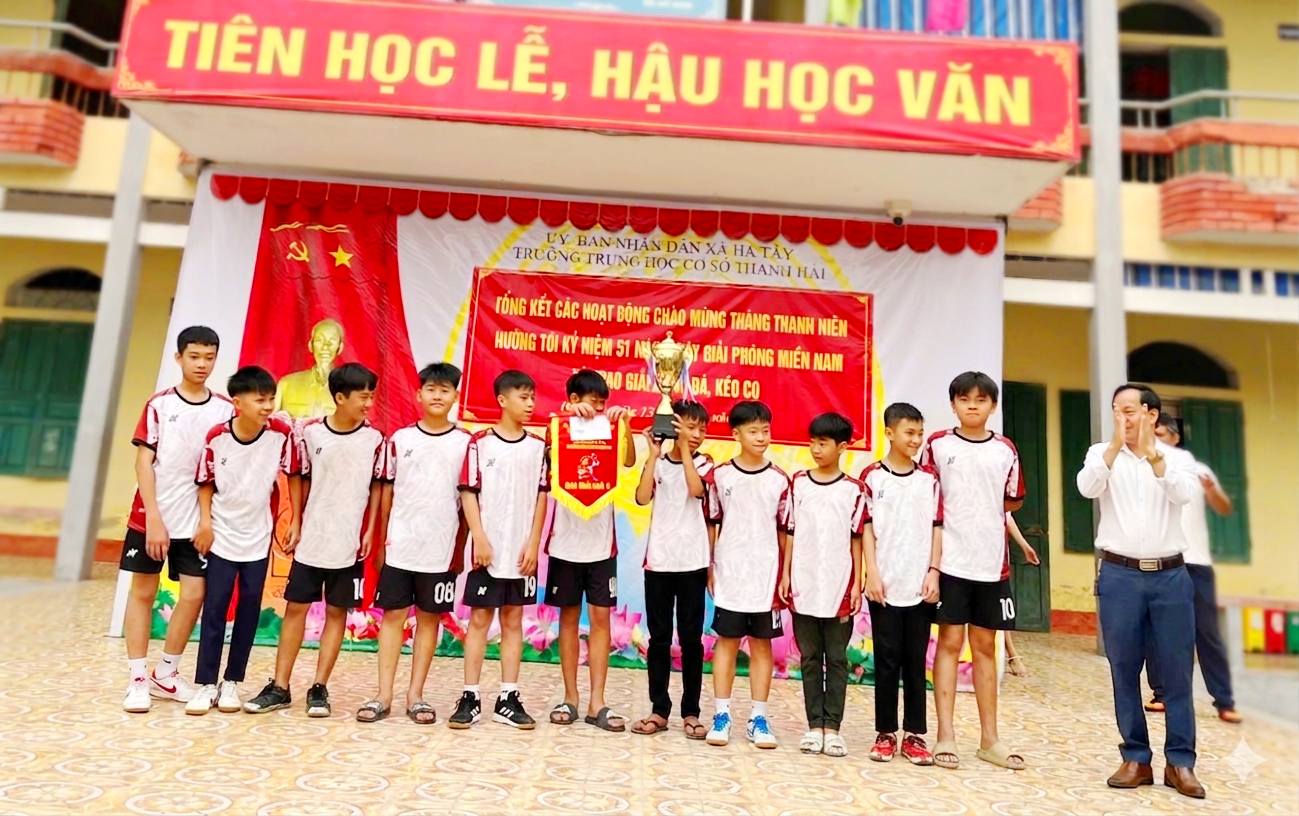 Sáng ngày 13/4/2026 Trường THCS Thanh Hải đã tổ chức chương trình tổng kết các hoạt động chào mừng Tháng Thanh niên, hướng tới kỷ niệm 51 năm Ngày Giải phóng miền Nam, thống nhất đất nước, đồng thời tiến hành trao giải cho giải đấu bóng đá và kéo co.